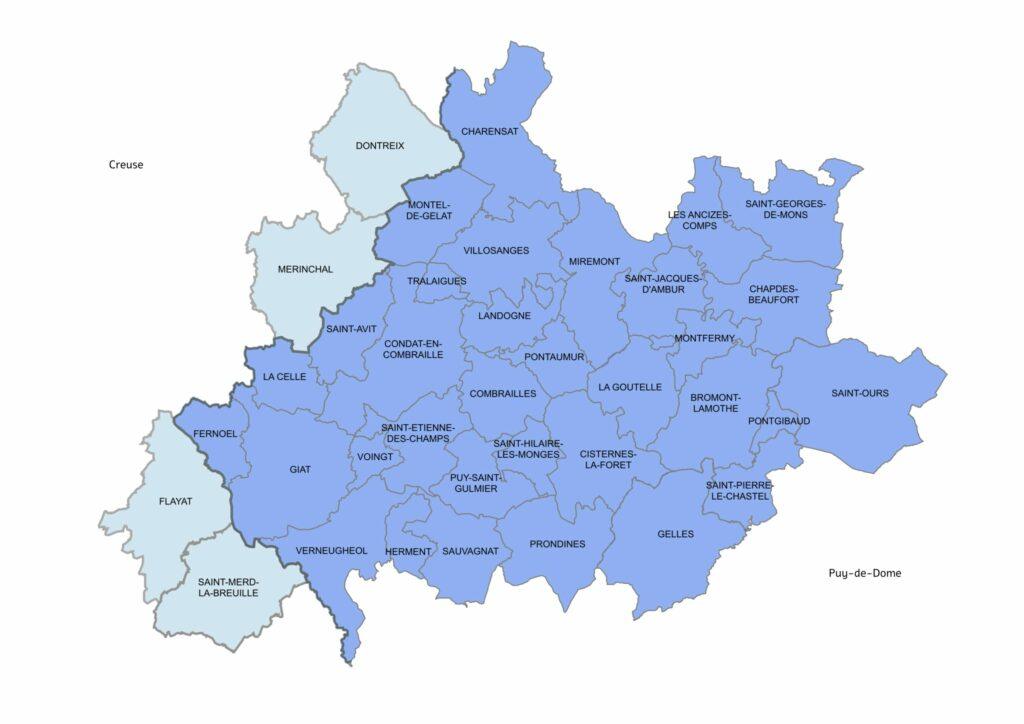 La CPTS regroupe 40 communes de la Combraille, dans le Puy-de-Dôme. Si vous habitez ou travaillez dans l’une de ces communes, ou à proximité, vous pouvez vous inscrire.
